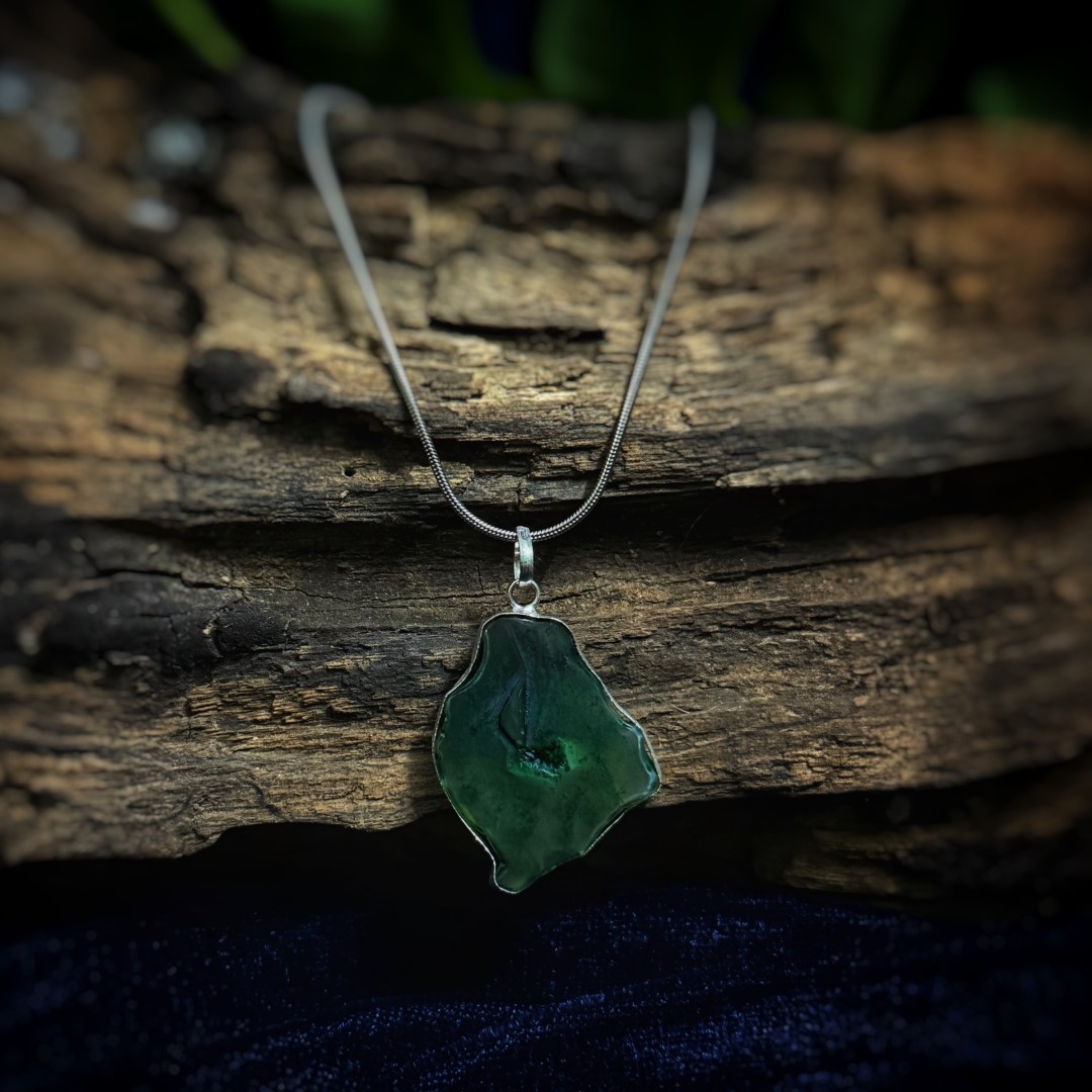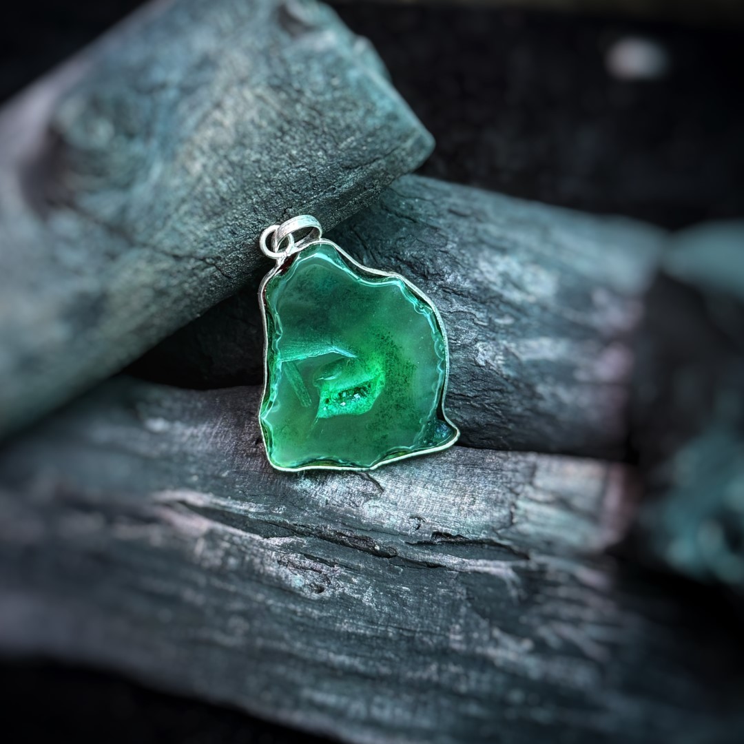 Green Agate Slice Pendant: Natural Stone Jewelry