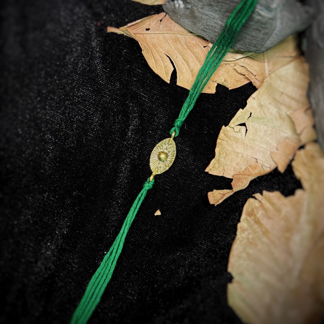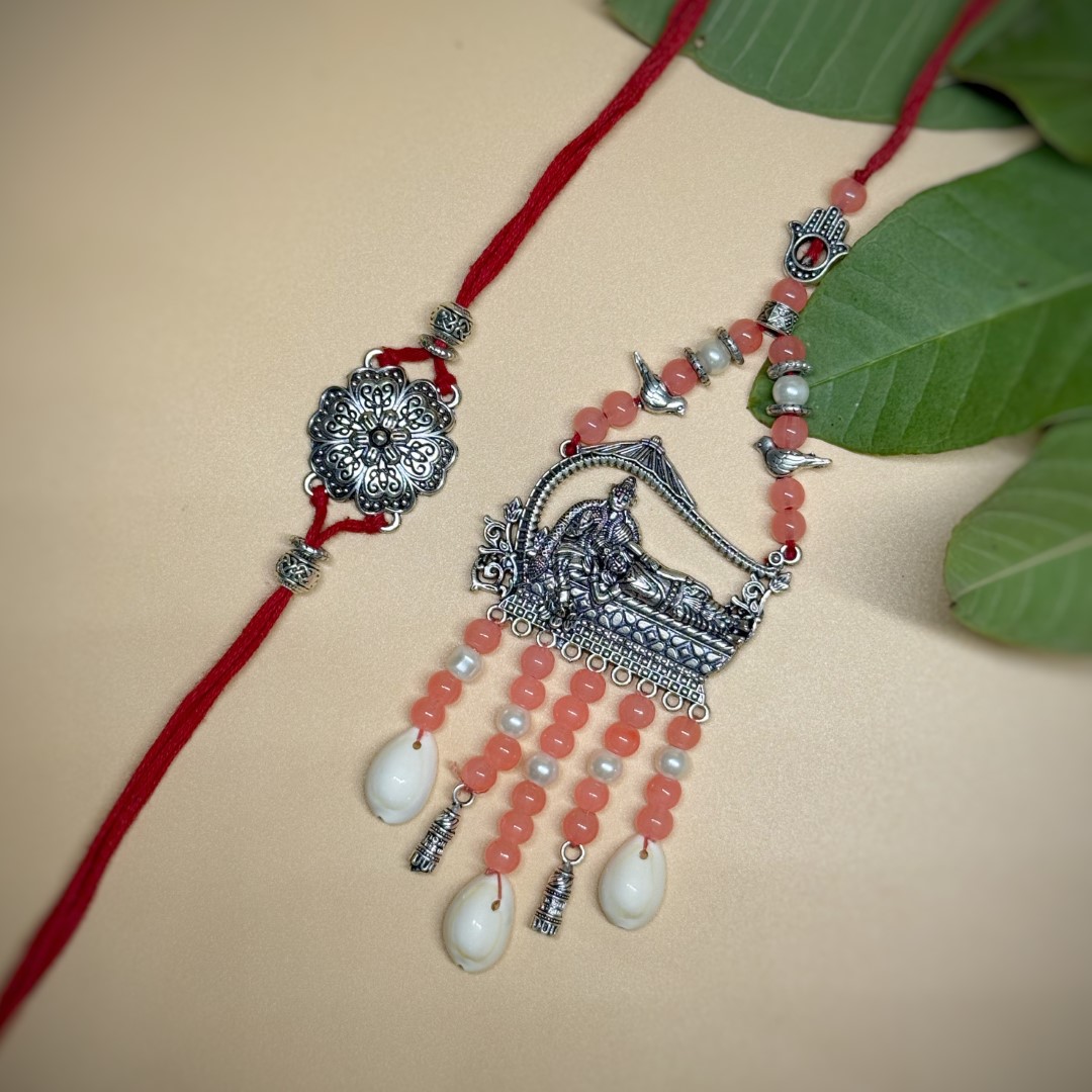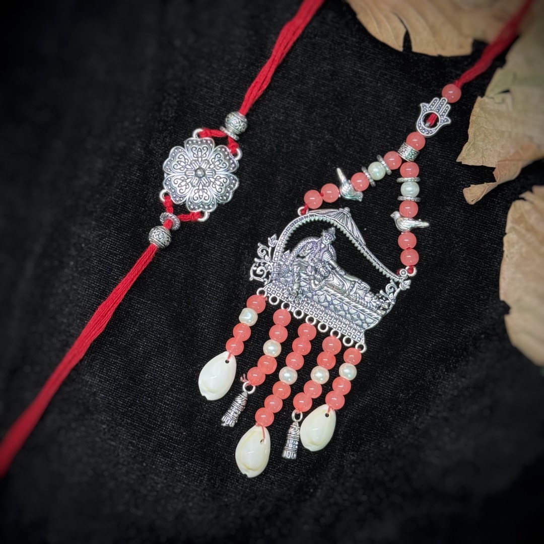 Yellow Thread Floral Rakhi - Oxidized Silver Design