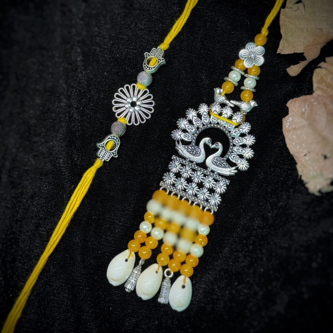 Yellow Swan Lumba Rakhi - Elegant Pair Couple Set