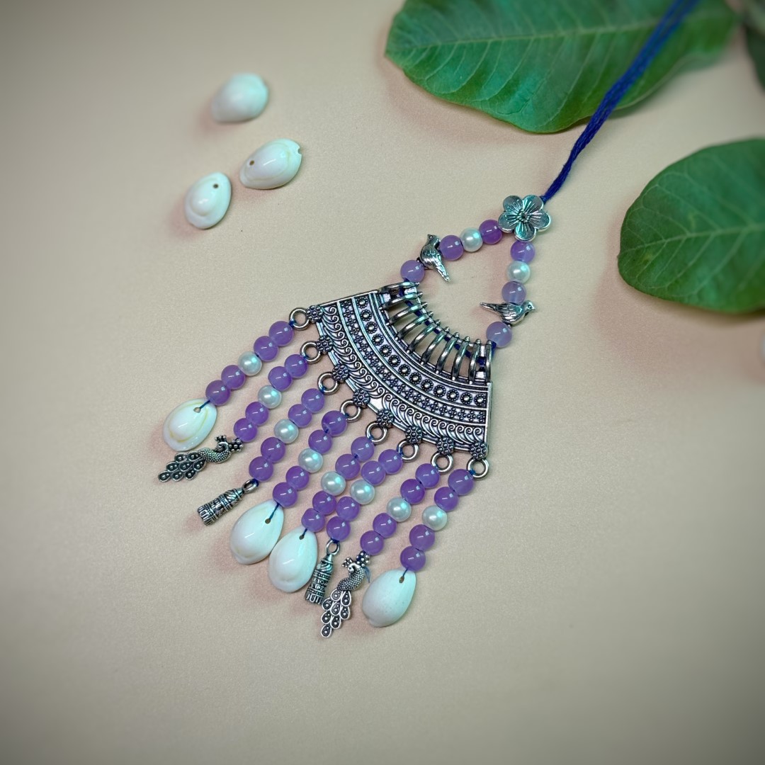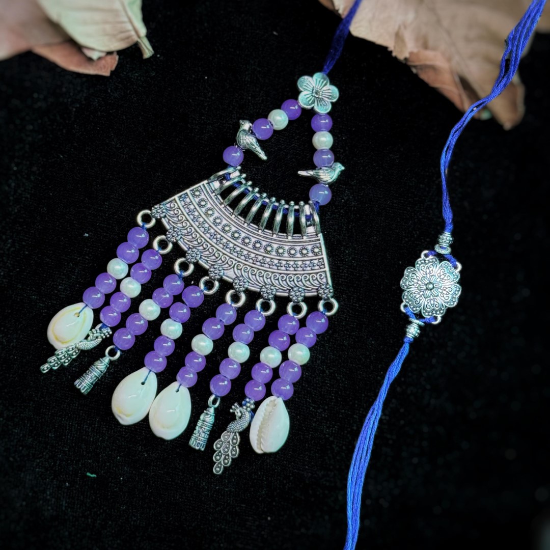 Purple Beaded Shell Rakhi - Couple Rakhi