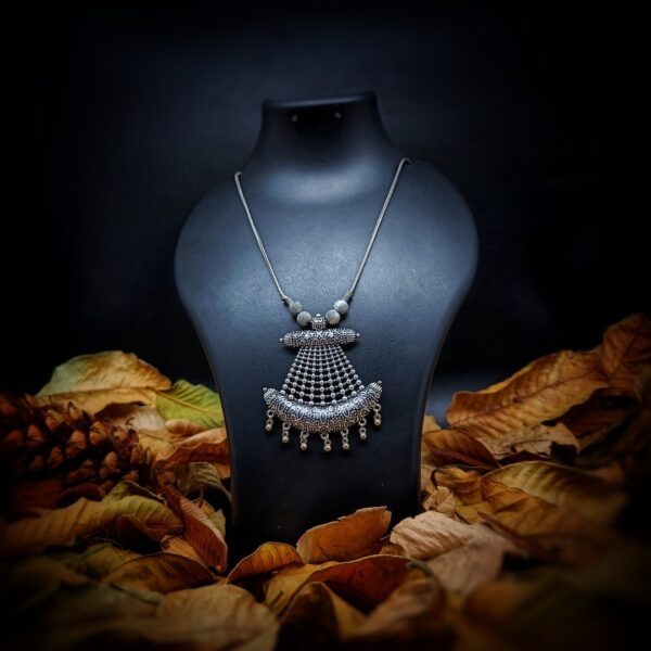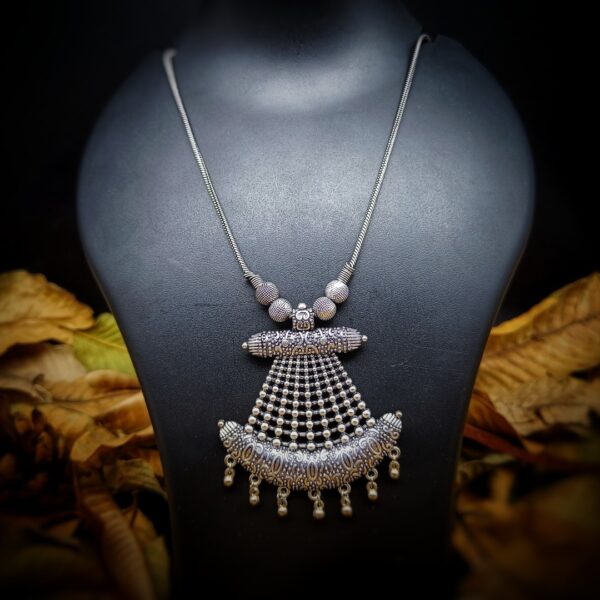 Ornate Oxidized Silver Elephant Pendant with Heart Motif