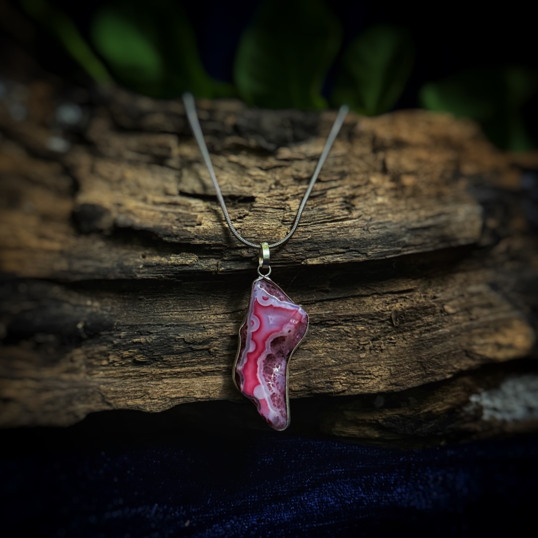 Pink Striped Agate Pendant: Unique Natural Jewelry