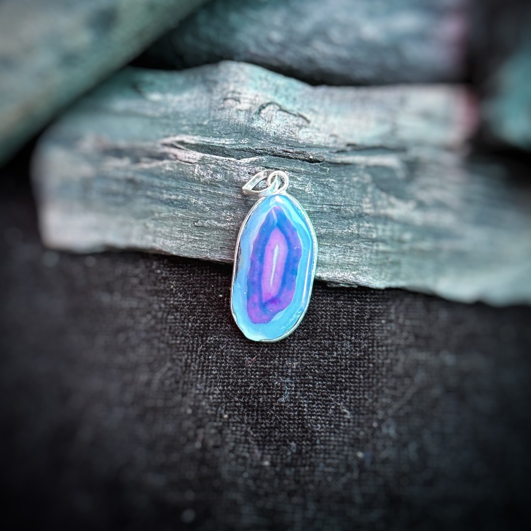 Purple Blue Agate Pendant: Vibrant Natural Jewelry