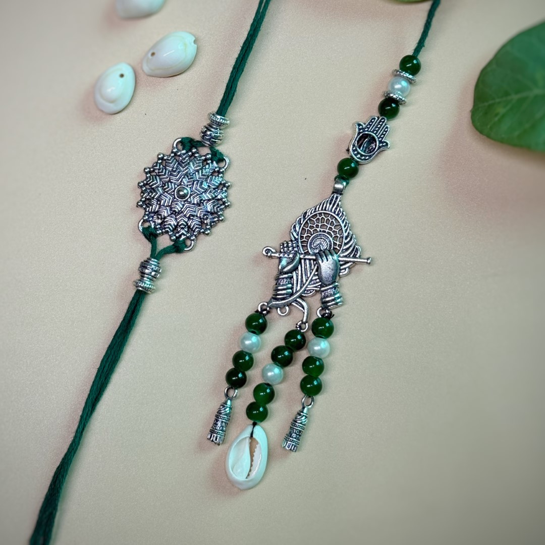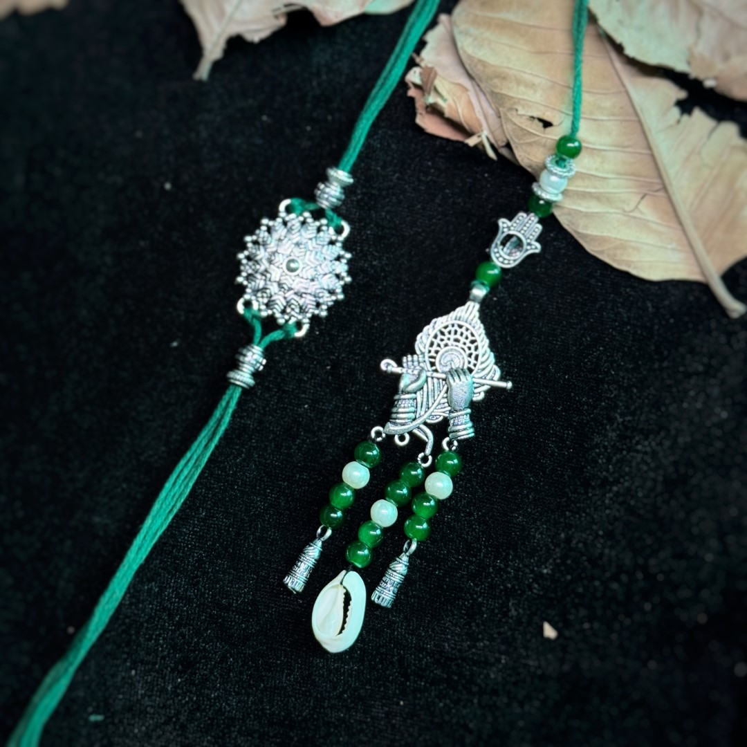 Green Morpankh Rakhi Lumba Set - Traditional & Stylish