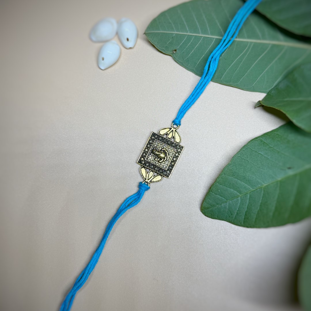 Sky Blue Ganesha Charm Rakhi - Festive Raksha Bandhan