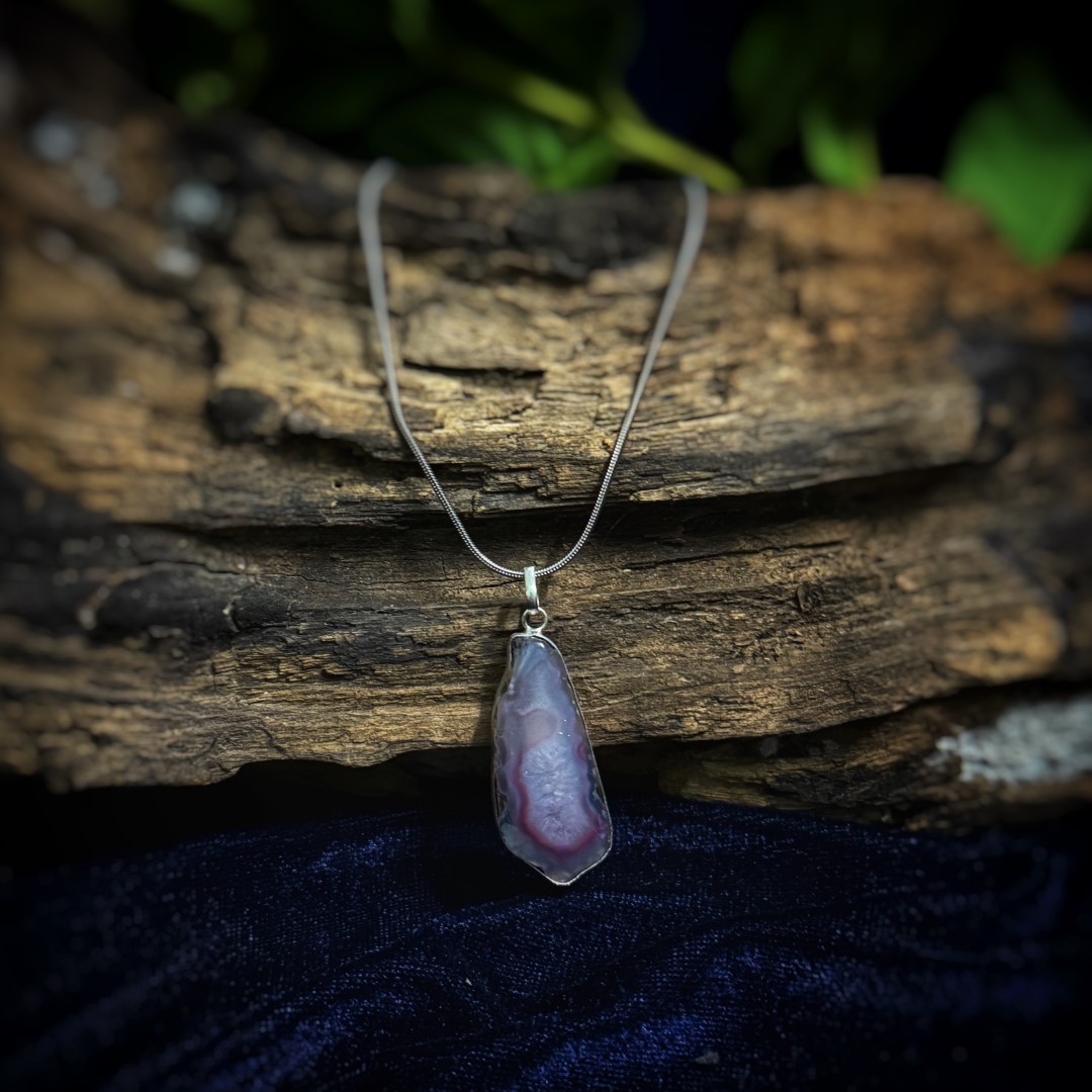 Long Pink Agate Pendant: Elegant Natural Jewelry