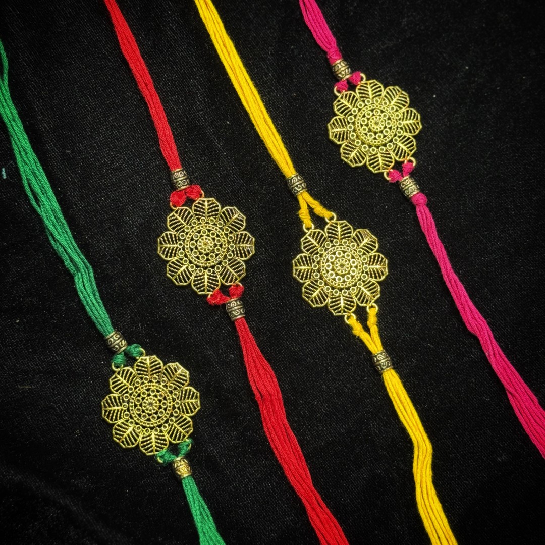 Handmade Golden Flower Rakhi Set- 4 Elegant Rakhi Set