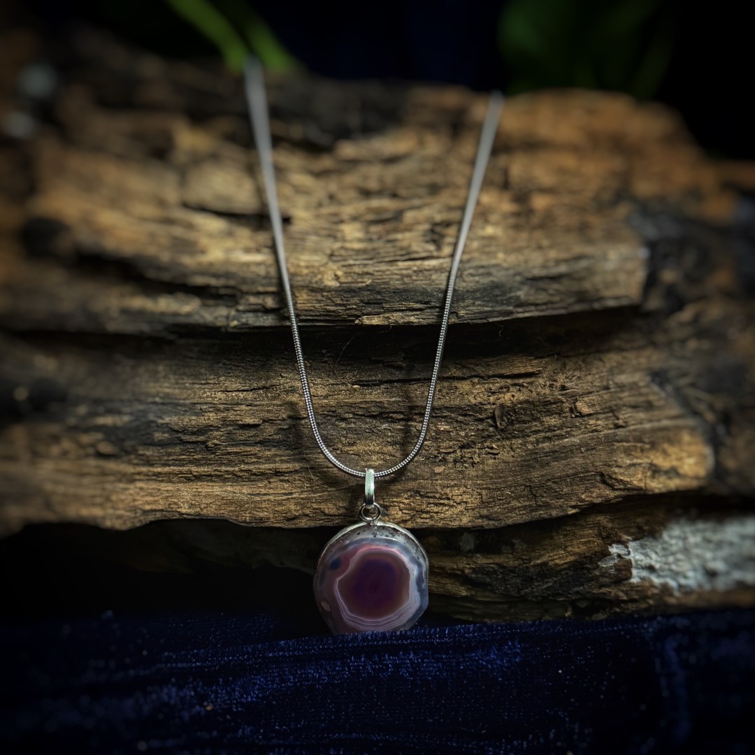 Blue Agate Slice Pendant: Natural Stone Jewelry