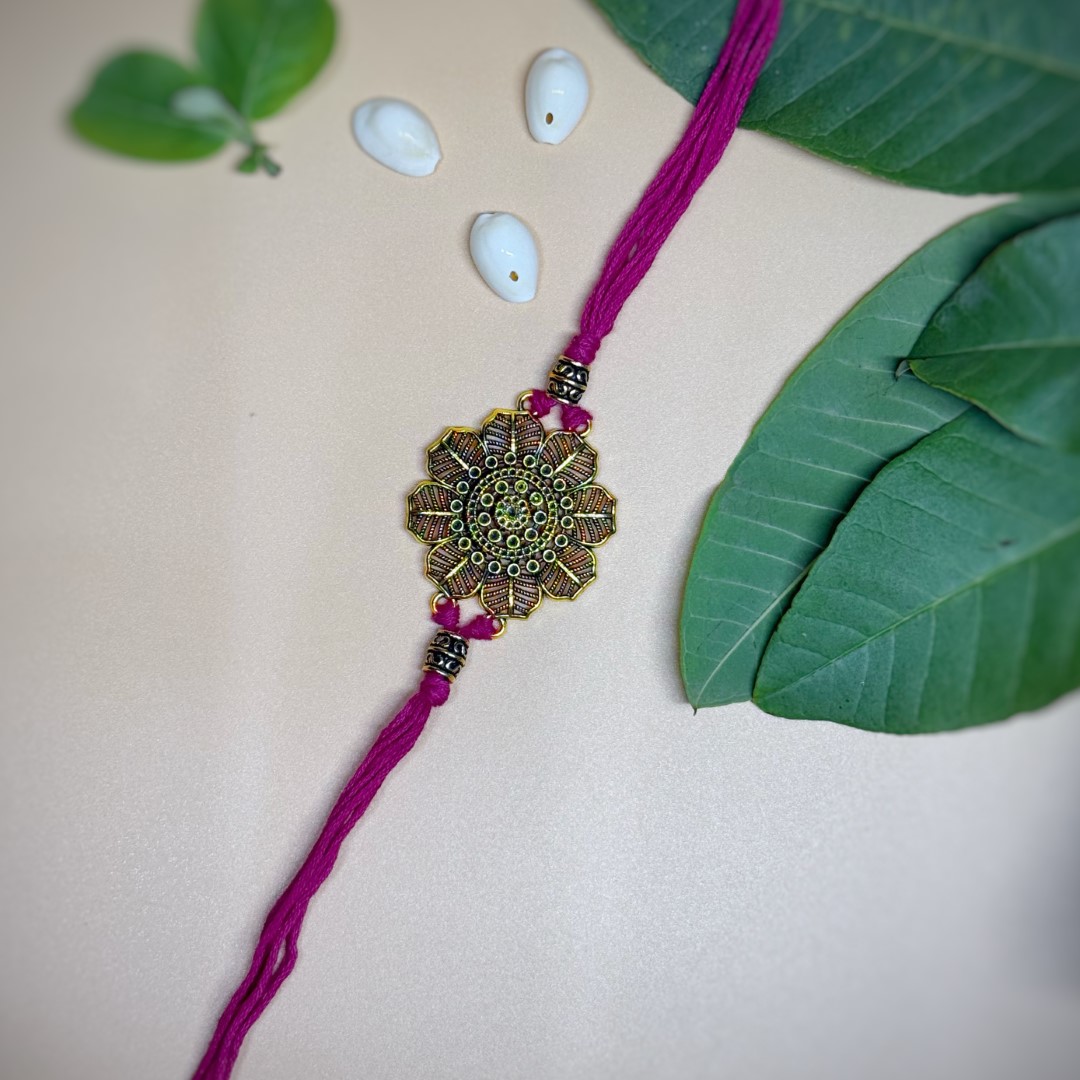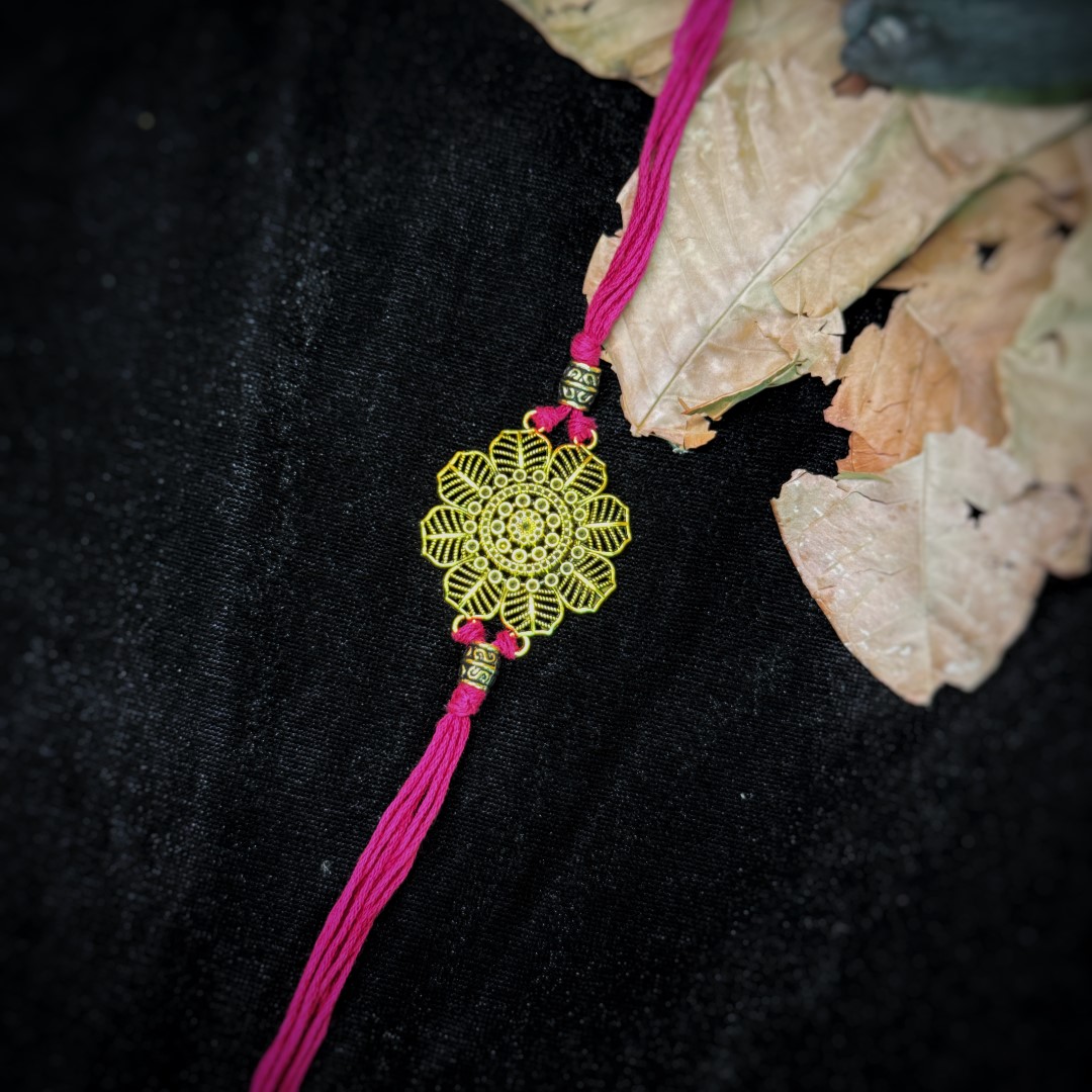 Pink Golden Flower Rakhi - Elegant Raksha Bandhan