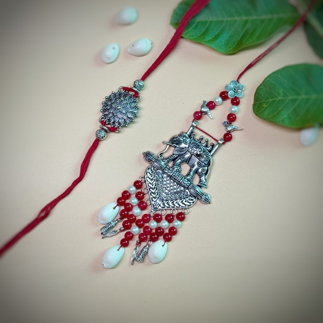 Yellow Swan Lumba Rakhi - Elegant Pair Couple Set