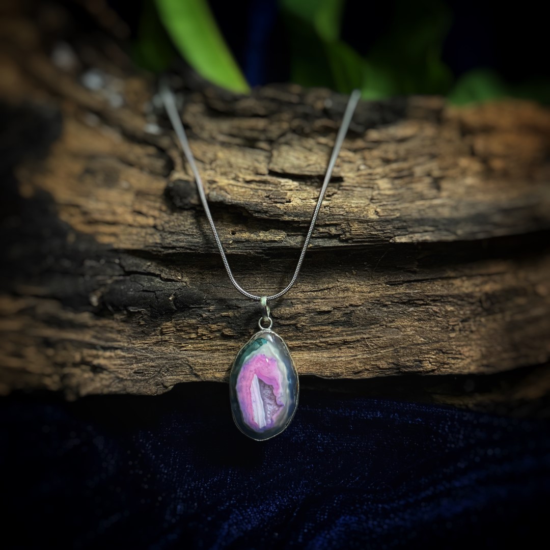 Pink Blue Agate Pendant: Colorful Natural Jewelry