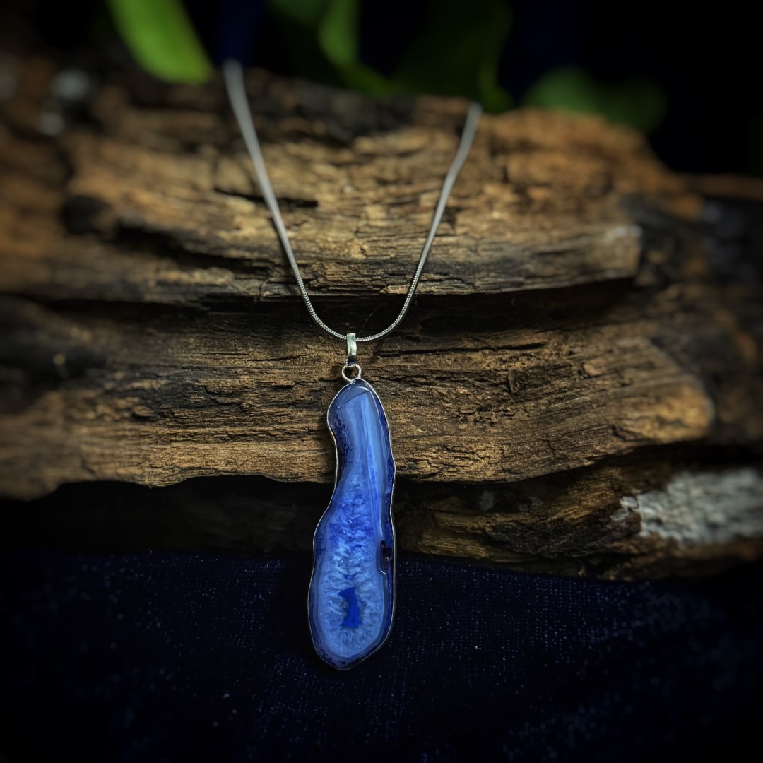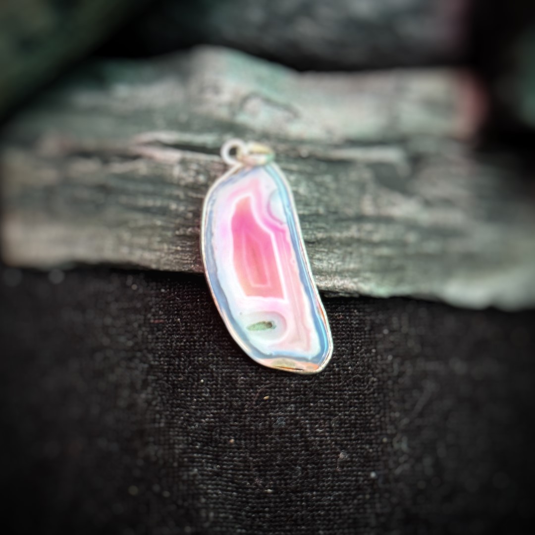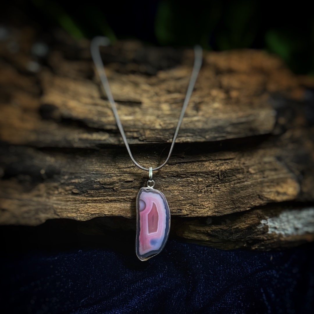Pink Blue Agate Pendant: Natural Stone Jewelry